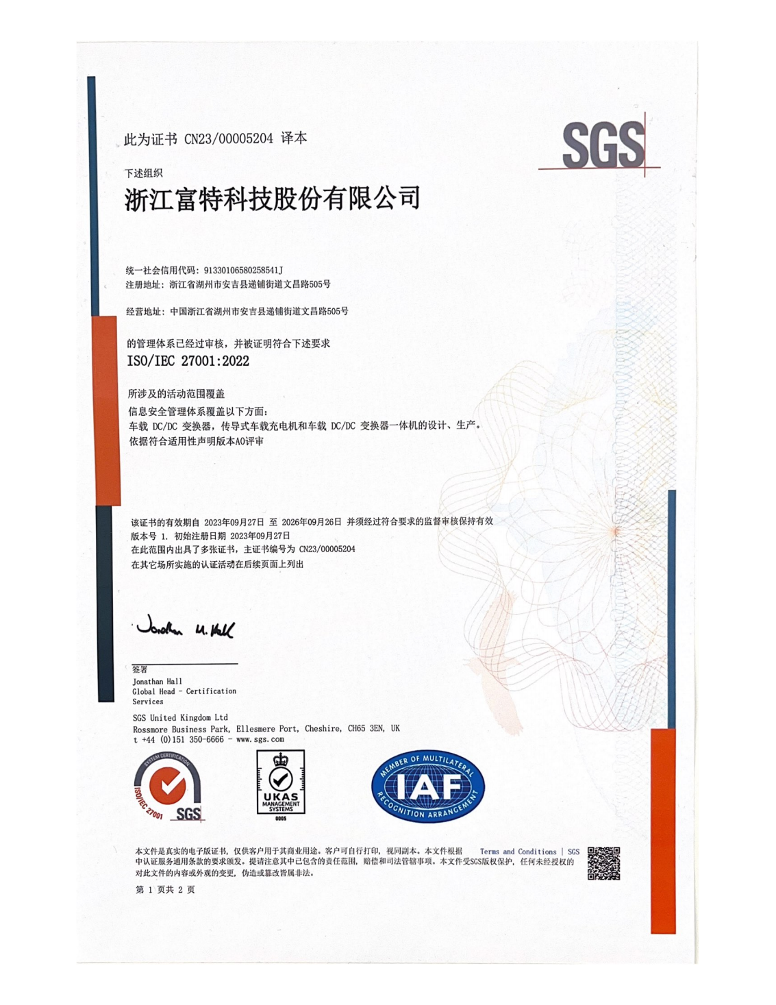 浙江富特科技股份有限公司,成立于2011年8月,生產(chǎn)基地位于湖州市安吉縣,研發(fā)中心位于杭州市西湖區(qū)、西安市高新區(qū),是一家專注于新能源汽車核心零部件的國家級高新技術(shù)企業(yè),是國內(nèi)新能源汽車車載充電機(jī)及車載 DC/DC 轉(zhuǎn)換器的主要供應(yīng)商。