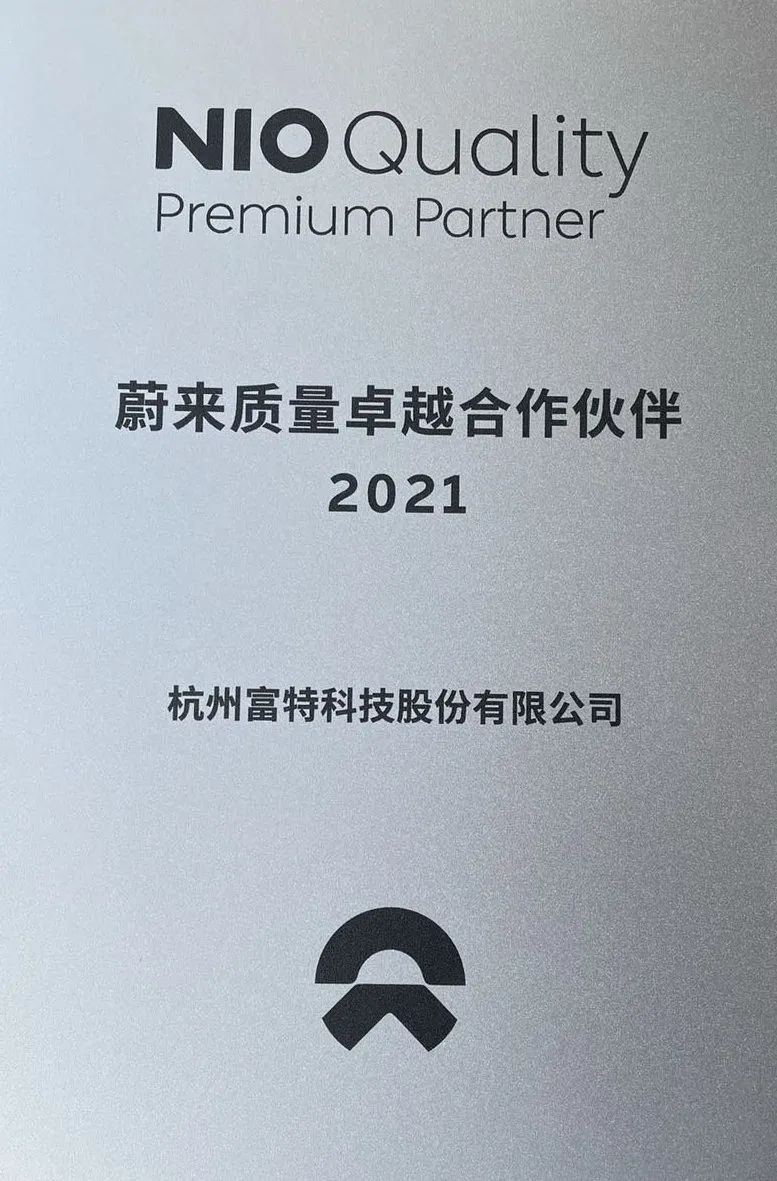 大會(huì)現(xiàn)場,蔚來汽車執(zhí)行副總裁沈峰先生,親自為富特科技頒發(fā)了NIO Quality Premium Partner(NQPP蔚來質(zhì)量卓越合作伙伴獎(jiǎng)項(xiàng)),表達(dá)了對(duì)富特科技產(chǎn)品的巨大信任和肯定。