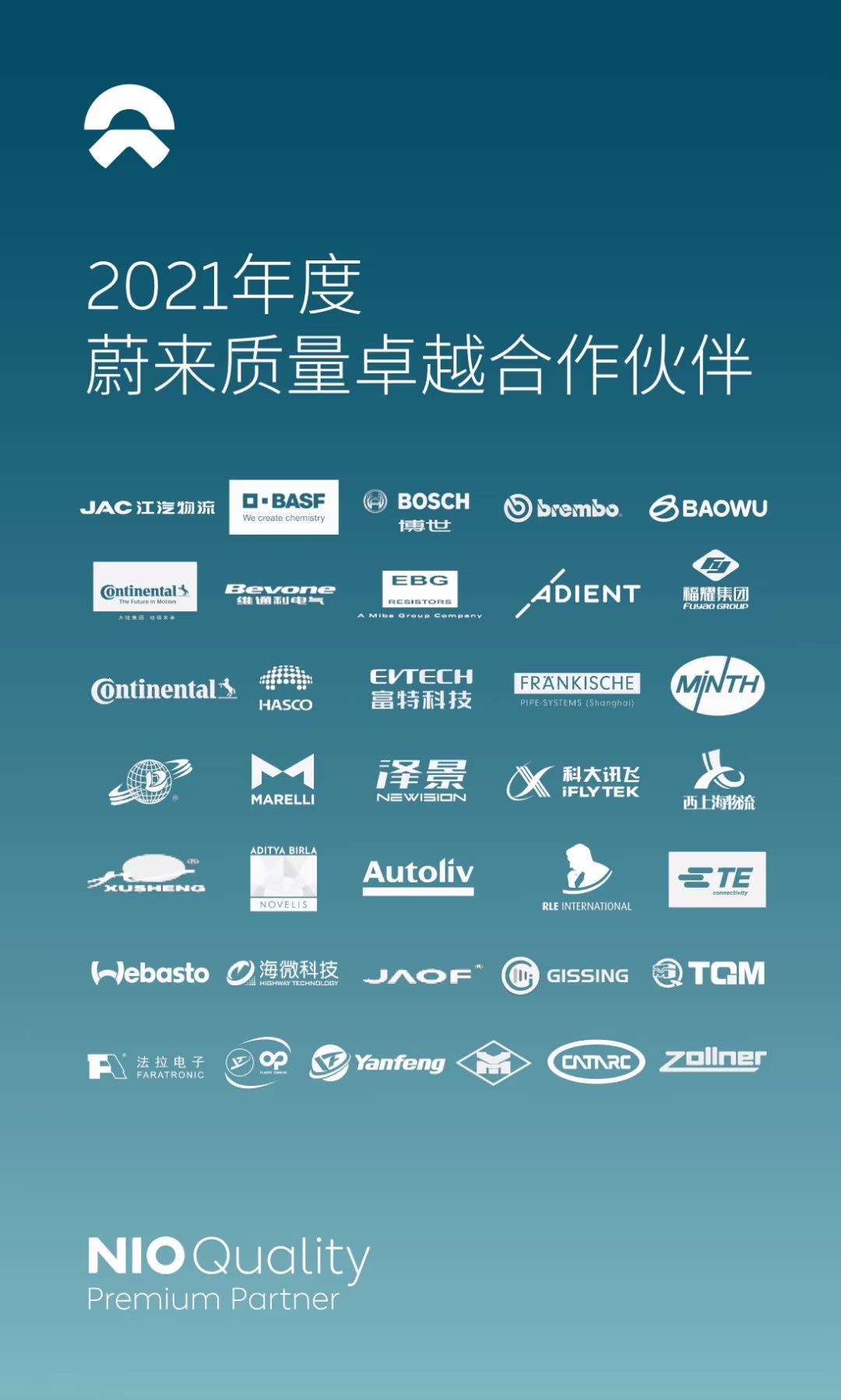 NQPP是蔚來首個(gè)對(duì)新能源汽車行業(yè)合作伙伴的全方位質(zhì)量評(píng)估獎(jiǎng)項(xiàng),是蔚來對(duì)于合作伙伴的最高認(rèn)可,也是蔚來頒發(fā)給合作伙伴的最重量級(jí)的獎(jiǎng)項(xiàng)。